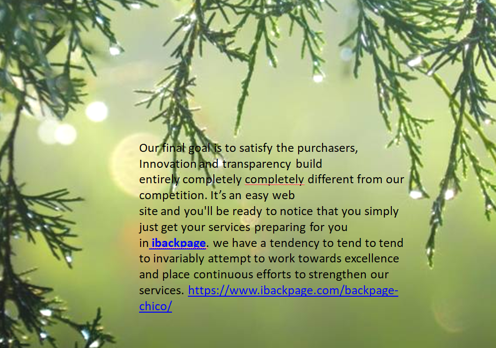 People who needed to earn by commerce with swinging their ads on web Site Similar to Backpage then backpage Chico is that the foremost applicable alternative for posting your ads to produce your promotions an opportunity to stay longer on the location, we have a tendency to tend to produce very little or no, substantial and medium determinable endeavor a use to post a daily style of postings with no restrictions. Our final goal is to satisfy the purchasers, Innovation and transparency build entirely completely completely different from our competition. It’s an easy web site and you'll be ready to notice that you simply just get your services preparing for you in ibackpage. we have a tendency to tend to tend to invariably attempt to work towards excellence and place continuous efforts to strengthen our services. https://www.ibackpage.com/backpage-chico/