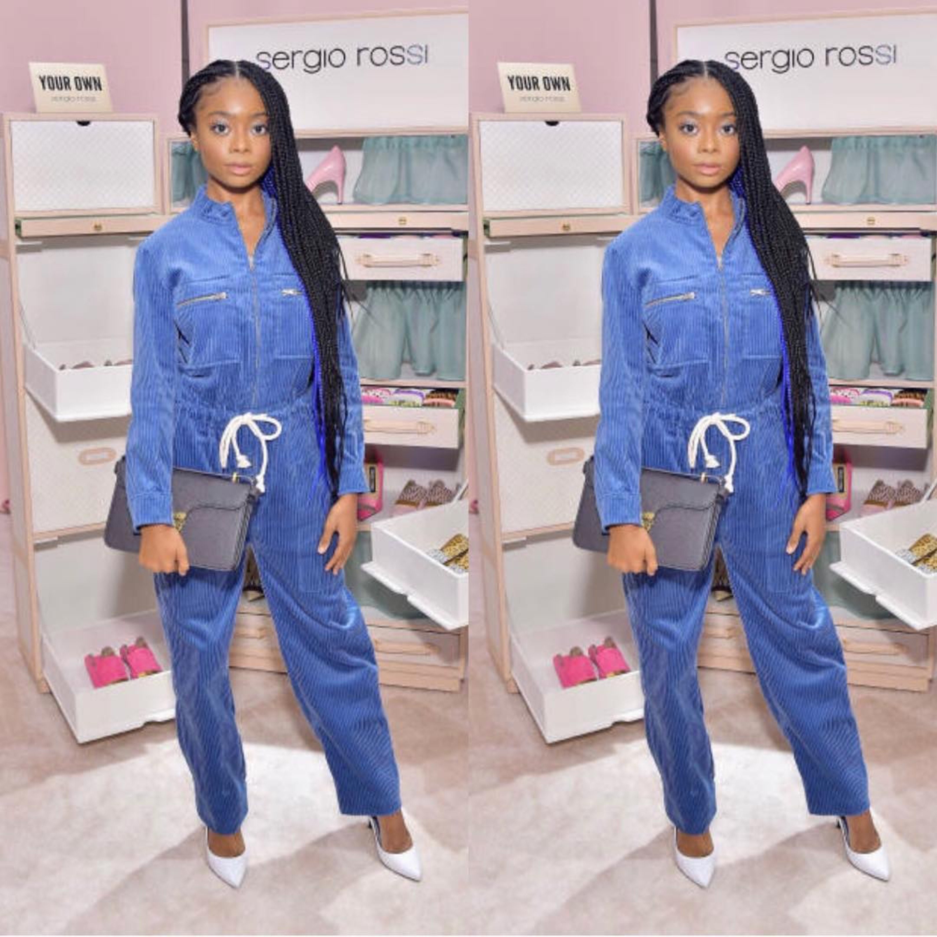 Fursan Handbags entered a ‘whole new world’ on Thursday when Disney Star, Skai Jackson, was spotted at the launch of Sergio Rossi’s new pop up store in Los Angeles, sporting the Fursan Dazzah bag - size 24 in grained calf leather.