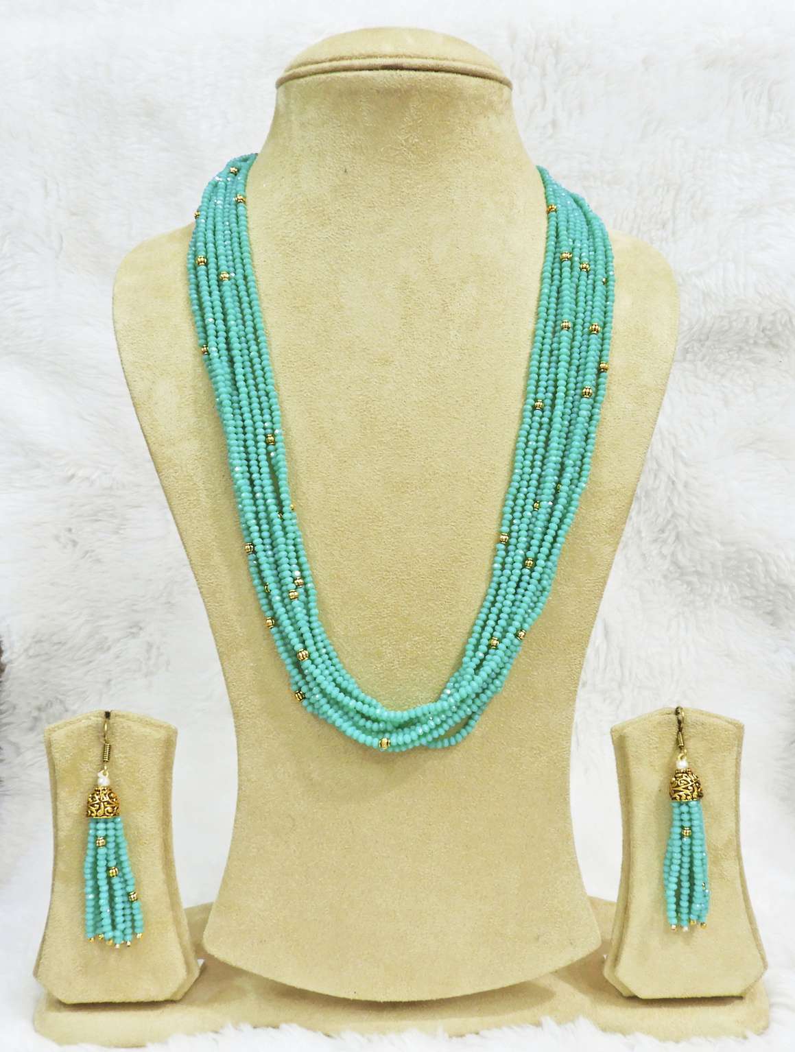 Babosa Sakhi Skyblue Necklace Set High Quality Long Ethnic Indian Jewellery Necklace Along with designer beaded hanging earrings , high in trend also having long lasting polishing . Full Length : 24 Inches , Earring Length : 8 cm . Happy Shopping !