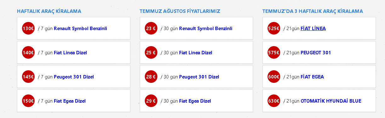 Bunun dışında yapacağınız gezi veya turlar için özel araç tahsil etmenin yolu yine Antalya Yüce rent a car dan geçiyor. Son model kiralık araçlarımız ile turlarınızın tadını arttıracak olan Yüce Araç Kiralama Antalya, müşteri ilişkilerinde sürekli kendini geliştiren personelleri ile daima müşteri odaklı hizmet vermektedir.