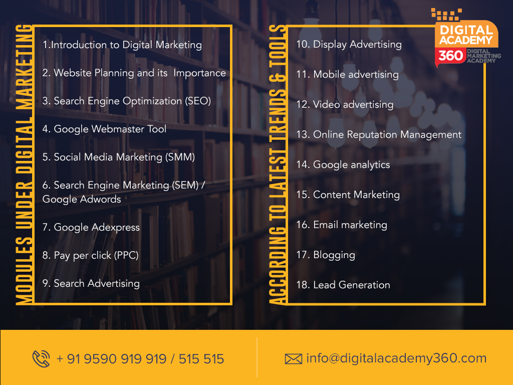 Digitalacademy360 is providing the online marketing courses in Bangalore on digital marketing, SEO, SMO, PPC, Web analytics and be a certified in Google.