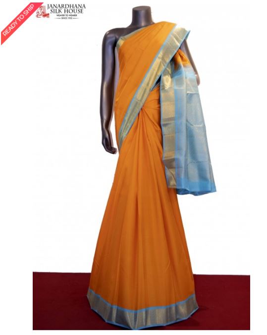 Janardhana Special. Hand Woven Pure Kanjeevaram Silk Saree In Classic Weave & A Traditional Zari Border.Adoring With a Contrast Rich Zari Pallu and Also Has an Attached 0.8 m Kanjeevaram Silk Blouse.