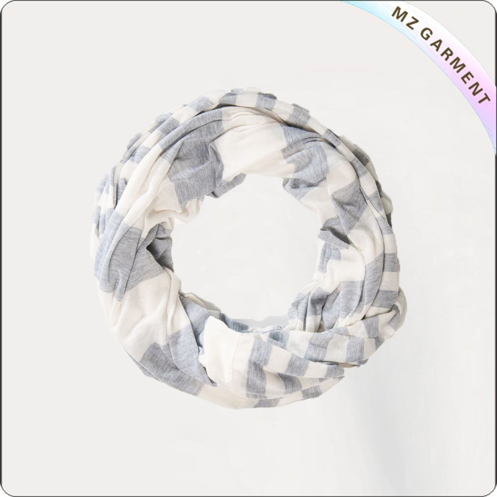China Cotton Scarf Manufacturer MZ Garment offers Cotton White & Grey Stripe Scarf OEM Service, 100% or 95% cotton, customized design, for out wear.