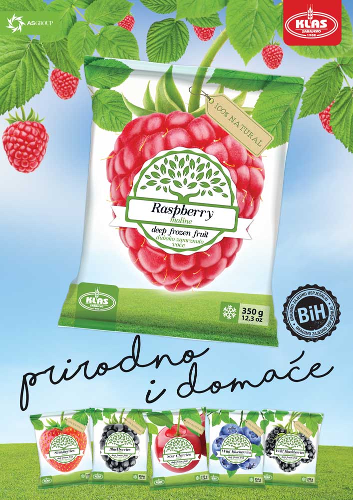 The company Klas d.d. possesses freezers and plants for storing and processing fresh berries and wild forest fruits. It processes raspberries, blackberries, blueberries, strawberries, sour cherries and cranberries.