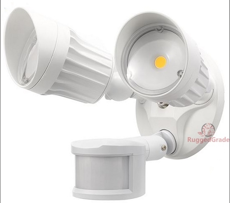 20 Watt LED Motion Sensor Flood Light - White - 1,750 Lumen - 240 Degree Sensor - 3000K - Round Heads