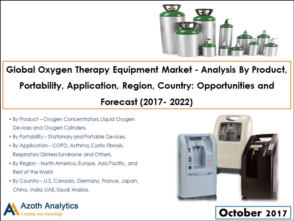 According to Azoth Analytics research report, “Global Oxygen Therapy Equipment Market - Analysis By Product, Portability, Application, Region, Country: Opportunities and Forecast (2017- 2022) - By Product (Oxygen Concentrators, Liquid Oxygen Devices and Oxygen Cylinders), By Portability (Stationary, Portable Devices), By Application (COPD, Asthma, Cystic Fibrosis, Respiratory Distress Syndrome)”, global market is projected to display a robust growth represented by a CAGR of 9.17% during 2017 – 2022, driven by increasing urbanization and rising levels of air pollution.