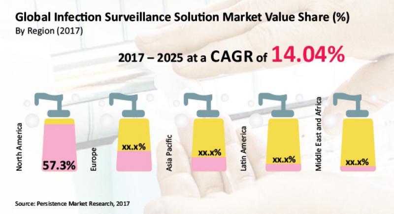 Infection surveillance solution helps healthcare facilities in reporting patient-associated data to the state and federal authorities. Integration of infection surveillance software with already existing networks of medical facilities and hospitals is an easy process. A recent report published by Persistence Market Research (PMR) estimates the global infection surveillance solution market to register a staggering 14.04% CAGR during the forecast- 2017 to 2025. The US$ 316.67 Mn market is likely to surpass US$ 900 Mn in revenues by 2025-end.