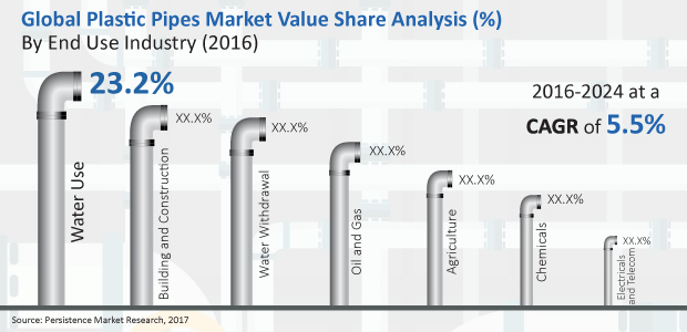 The report reveals that recovering stance of oil & gas business from the recent economic slowdown is benefitting the sales of plastic pipes. In 2017, increasing shale drilling activity in the U.S. and Canada is fuelling the demand for plastic pipes. In addition to this, increasing exploration of shale gas, which constitutes onshore exploration activities, is expected to result in an increase in demand for plastic pipes. The aforementioned practices are primarily directed to cope up with the economic slowdown of oil & gas industry, but they are incidentally increasing the demand for plastic pipes across the globe during the forecast period.