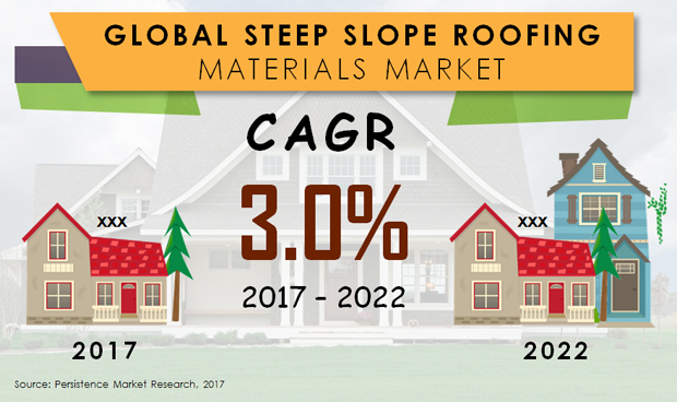 Persistence Market Research forecasts the United States steep slope roofing materials market to exhibit a compound annual growth rate (CAGR) of less than 3% from 2017 to 2022.