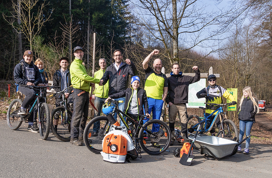 Vor einigen Tagen wurde das Equipment des MTB Siegerland, das für das alljährliche Aufpimpen des Flowtrails genutzt wird, gestohlen. Die Mountainbikestrecke am Siegener Fischbacherberg ist in der Zeit zwischen November und Februar im Winterschlaf. Um das 4 km lange Outdoor-Highlight wieder für alle Hobby- und Profiradler befahrbar zu machen, schuften derzeit engagierte Mitglieder des Vereins und befreien die Strecke von Laub und Ästen und verbesserten die Strecke. Nach dem Einbruch und Diebstahl war das Unverständnis der Helfer groß und die Gesichter traurig. Jetzt herrscht aber wieder richtig gute Laune. Grund zur Freude gibt die großzügige Spende von Geschäftsführer Roland Lutz und seinem Unternehmen Eopti.