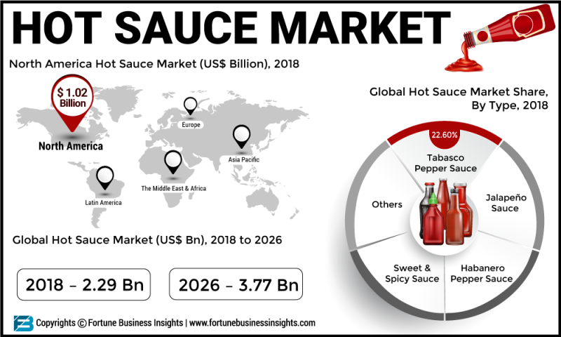 The rising demand for various international cuisines that includes authentic dishes from all around the world is boosting the global hot sauce market, says Fortune Business Insights in their new report. The report is titled,” Hot Sauce Market: Global Market Analysis, Insights, and Forecasts, 2018-2026” and it has prognosticated to grow remarkably with rising demand for spicy, bold, and exotic international cuisines among consumers.