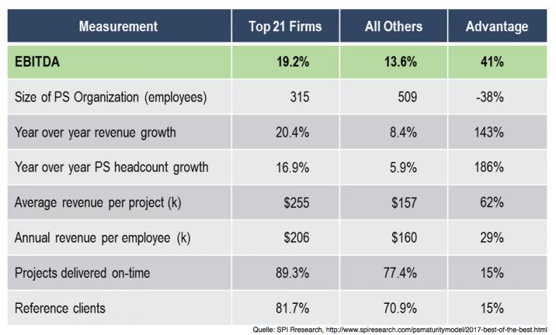 Laut SPI übertrafen diese Best-of-the-Best-Unternehmen ihre Wettbewerber und den Benchmark-Durchschnitt nicht nur mit deutlich höheren Gewinnen, sondern hatten auch im Schnitt größere Projekte und zufriedenere Kunden. Diese Top-Performer profitierten zudem von einem überdurchschnittlichen Umsatzwachstum, das weit über das der Wettbewerber hinausging. Der Benchmark beinhaltet mehr als 200 KPIs und zeigt, dass das Umsatz- und Personalwachstum auf den tiefsten Stand seit sieben Jahren zurückging, obwohl viele Frühindikatoren im Jahr 2016 Verbesserungen zeigten.