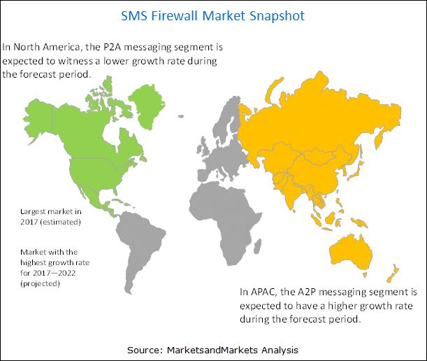 According to the new market research report "SMS Firewall Market by SMS Type (A2P Messaging and P2A Messaging), SMS Traffic (SMS Exchange and International Exchange), Messaging Platform (Cloud and Traditional), and Region (North America, Europe, and Asia Pacific) - Global Forecast to 2022", published by MarketsandMarkets™, the SMS firewall market size is expected to grow from USD 1.73 Billion in 2017 to USD 2.82 Billion by 2022, at a CAGR of 10.36%.