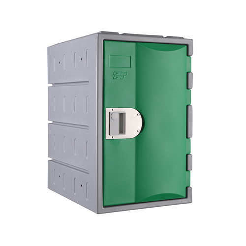 HDPE Plastic Locker T-H385M: 1 Tier. Heavy Duty One Tier HDPE Plastic Locker, 1 Door, 610mm Height x 385mm Width x 500mm Depth without Base, for Staff, Students, Workplace, Fitness Clubs. 3 Tiers as One Column Available. Red, Yellow, Navy Blue, Coffee, Green, Grey Locker Doors. Various Lock Choices.